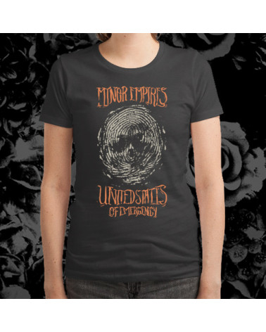 Nueva camiseta de MINOR EMPIRES modelo "United States of Emergency" disponible en manga corta color gris carbón y en tallas de chica y chico. Fabricadas en camiseta de la marca Gildan 100% algodón en el modelo G5000 para chico y en el modelo 64000 para chica con serigrafia a dos tintas. Las medidas aproximadas son: