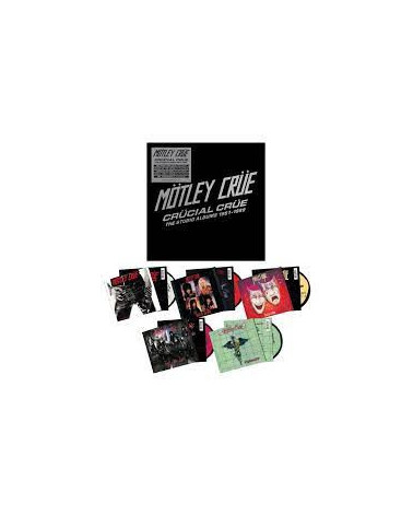 Caja de edición limitada con los discos de Motley Crue publicados entre 1981 y 1989 , en formato cd y vinilo. estilo metal