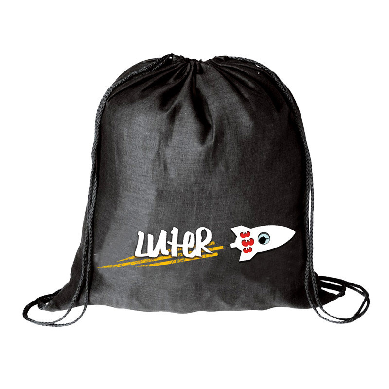 Mochila en algodón 100% serigrafiada. Dimensiones 46 X 37 cm.