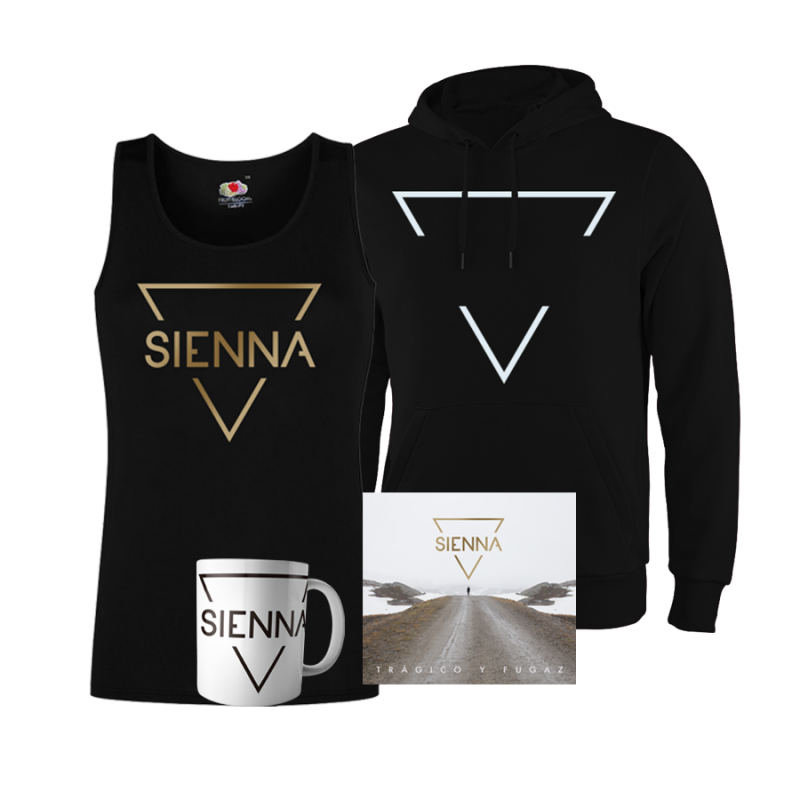 Incluye el disco en formato digipack ‘Trágico y Fugaz’ junto a una camiseta de tirantes, una sudadera con capucha y una Taza.