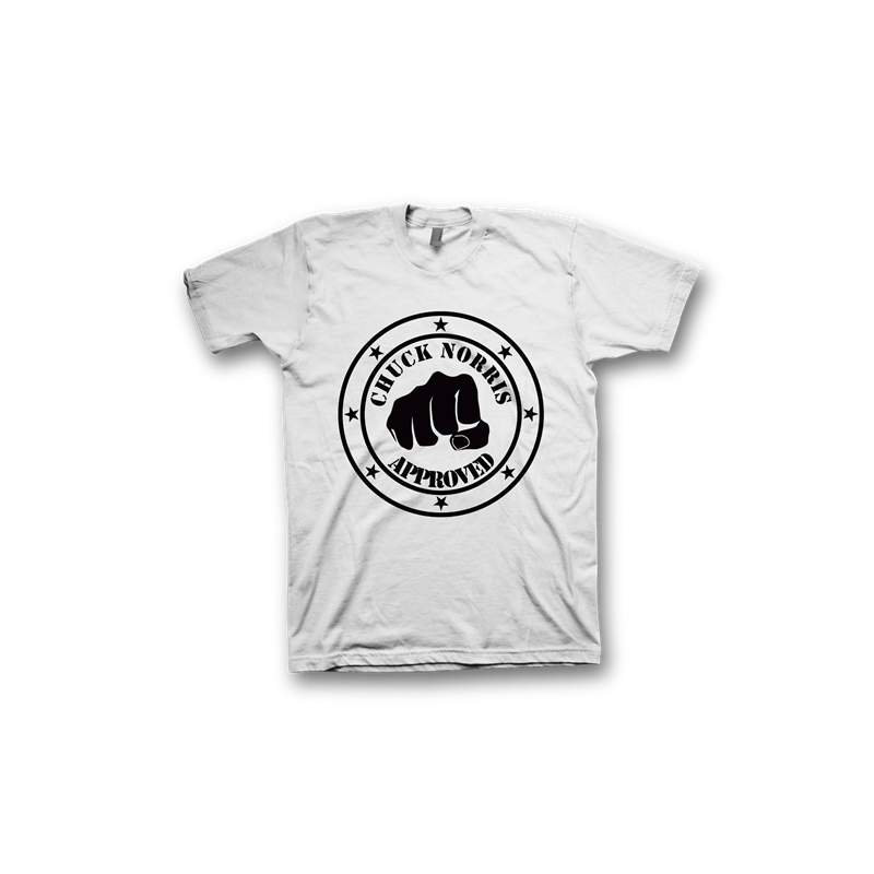 Camiseta blanca Chuck Norris approved disponible en tallas de chico, chica y niño