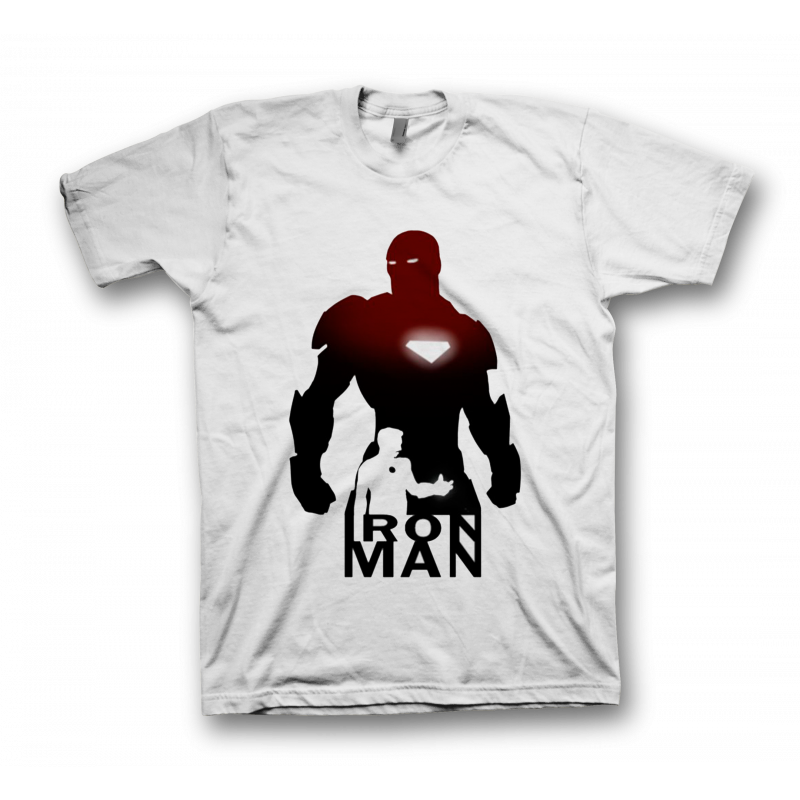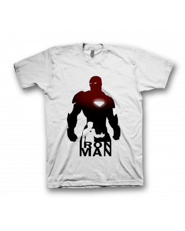 Camiseta blanca dibujo Iron Man disponible en tallas de chico, chica y unisex niño.