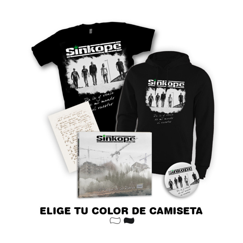 Este pack especial incluye además del nuevo álbum una camiseta modelo "Banda" impresa en el pecho disponible en tallas de chico, chica (manga corta y tirantes) y niño, una sudadera con capucha color negro modelo "Banda" disponible en tallas unisex (chico, chica), una copia manuscrita de un tema de la banda y una chapa de regalo.