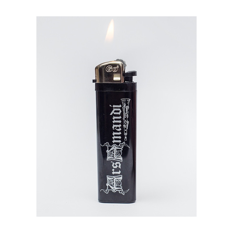 Mechero oficial de Ars Amandi en color negro y sublimado con el logo de la banda en blanco.