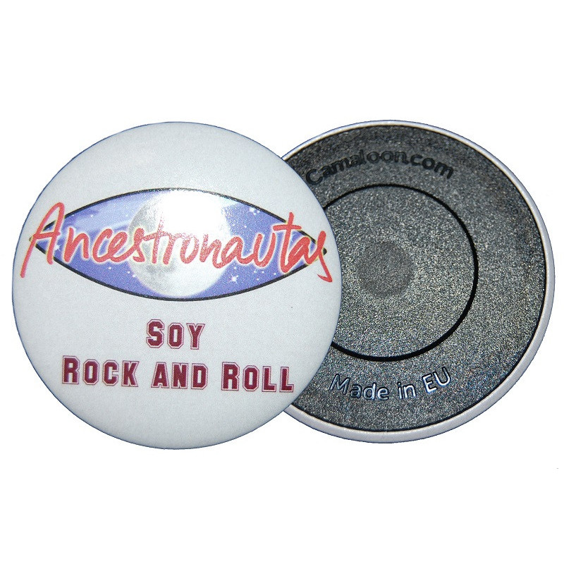 Imán para nevera (No abrebotellas) metálico con el logo de la banda - Soy Rock And Roll. Tamaño diametro aprox: 56 mm