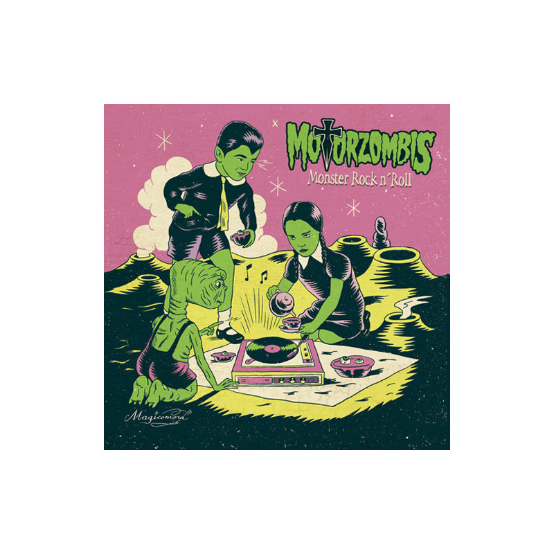 Motorzombis vuelven a la carga como cada halloween, y esta vez lo hacen con un nuevo LP! Este nuevo disco será editado bajo el sello discográfico Rock Estatal Records y promete estar repleto de sorpresas y colaboraciones alucinantes. La primera sorpresa se trata de su magnífica portada, firmada por el reconocido ilustrador Sergio Mora y que nos sugiere un paraje de surrealismo pop donde unos chavales un poco deformes y monstruosos escuchan vinilos en un tocadiscos añejo mientras meriendan cosas nauseabundas. Todo bajo el estilo elegante e impactante propio del artista. Esta imagen nos augura pues, un disco colorista y siniestro a la vez, encaminado a cautivar a nuevas generaciones de Monster Rockers.