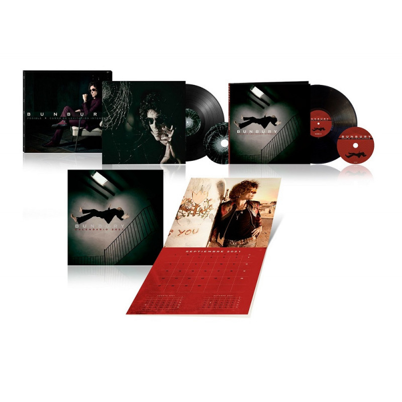 Pack en slipcase con los dos últimos álbumes de Bunbury en formato Vinilo + CD: “Posible” + “Curso de Levitación Intensivo” publicados ambos en 2020. Incluye calendario del año 2021 con 13 fotos de diferentes etapas de la carrera de Bunbury