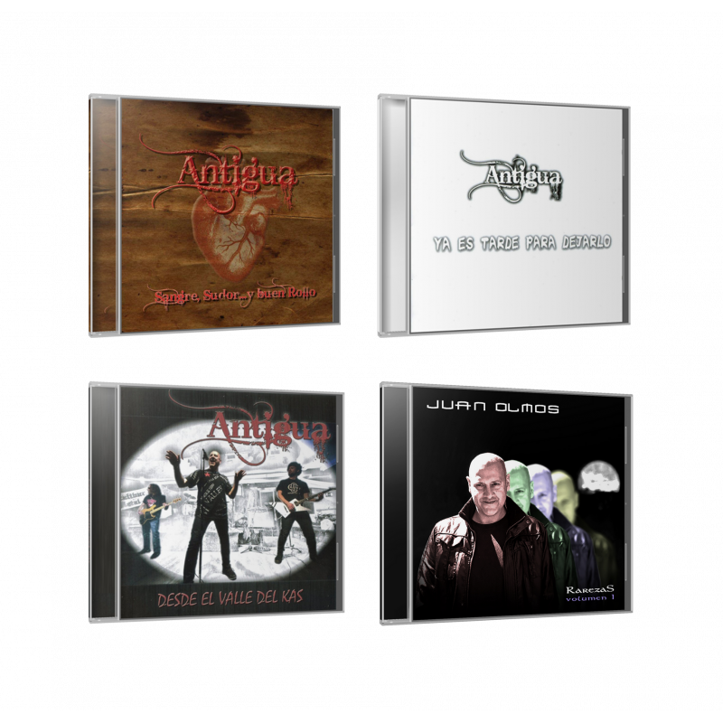 Incluye discografía anterior de Antigua: · Sangre, Sudor y Buen Rollo · Ya es tarde para dejarlo · Desde el valle del Kas + El disco ‘Rarezas' de Juan Olmos