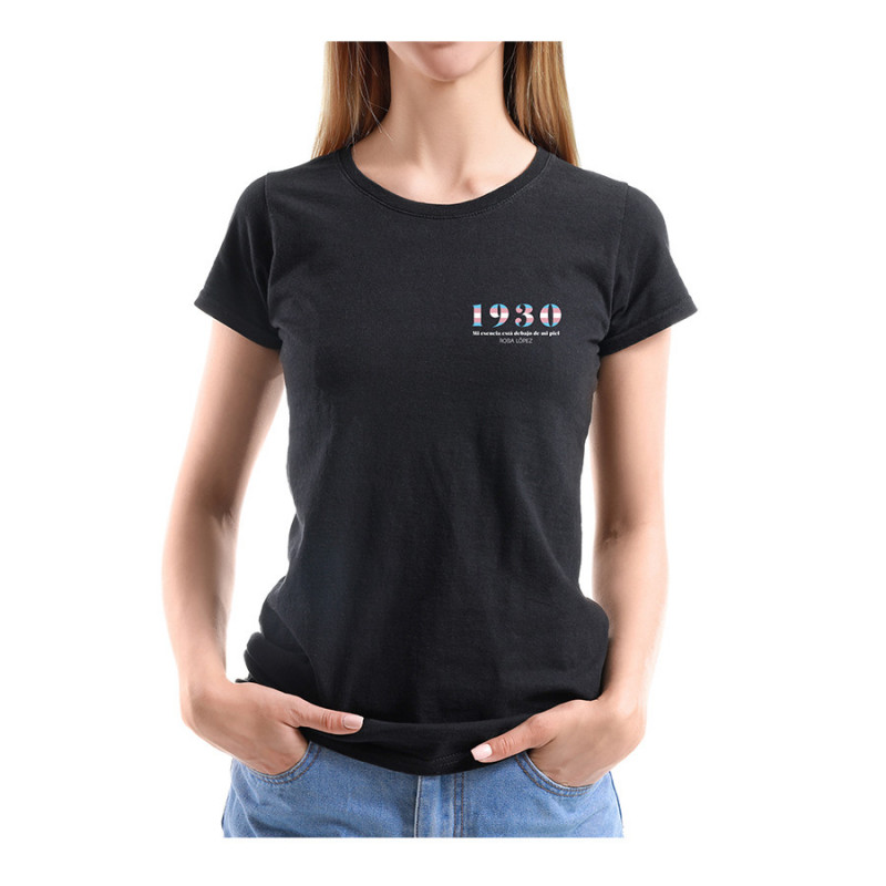 Rosa - Camiseta Negra Chica1930 (Impresión Pecho/Espalda)