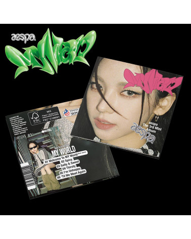 Edición exclusiva y limitada en formato CD versión poster, con portada de Karina, de “MY WORLD – The 3rd Mini Album”, de la banda de K-Pop aespa, que incluye 6 temas, entre los que figuran los ya virales y exitosos “Welcome To MY World (feat. naevis)” y “Spicy”. Con este álbum, el grupo emprende un nuevo camino musical y da la bienvenida a sus seguidores a este nuevo universo. Tras su debut en 2020, aespa se posicionó la lista global de éxitos de Billboard en tan solo tres días, lo que supuso el debut más alto de una canción K-pop debut en esta lista, superando las 21 millones de visualizaciones en tan solo 24 horas. “MY WORLD” es un trabajo en el que aespa ha querido compartir varias emociones y tonos a través de diversos géneros musicales, que van desde temas para las pistas de bailes a dulces baladas R&B.