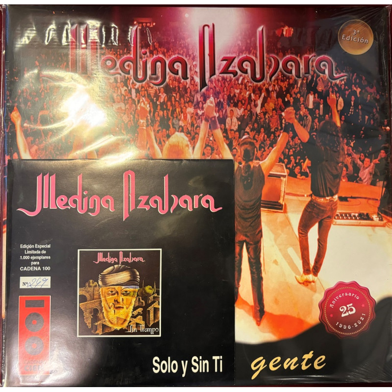 3ª edición del “A toda esa gente” de Medina Azahara en formato doble vinilo y Gatefold de lujo, realizada con motivo del 25 Aniversario de su publicación en 1996. Su edición original en CD y doble cassette alcanzó pronto el disco de oro y en menos de un año el de platino.