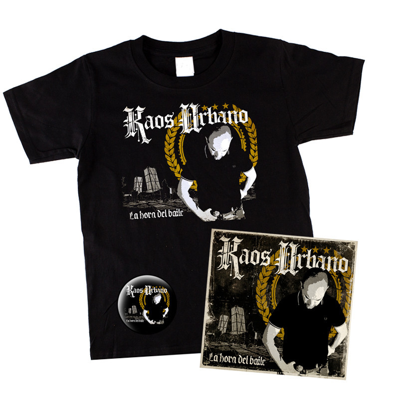El pack incluye el Cd La Hora del Baile, una camiseta de manga corta modelo La Hora del Baile disponible en tallas de chico, chica y unisex niño, y una chapa de la banda.