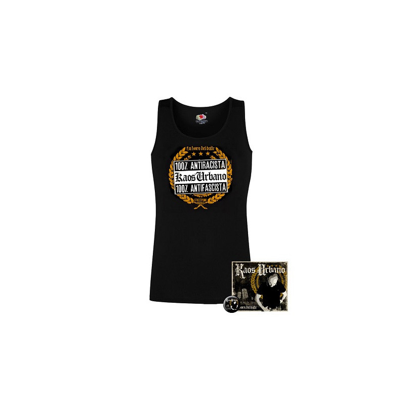 Kaos Urbano - Pack Bronka+Camiseta tirantes 100% Antifascista+Chapa